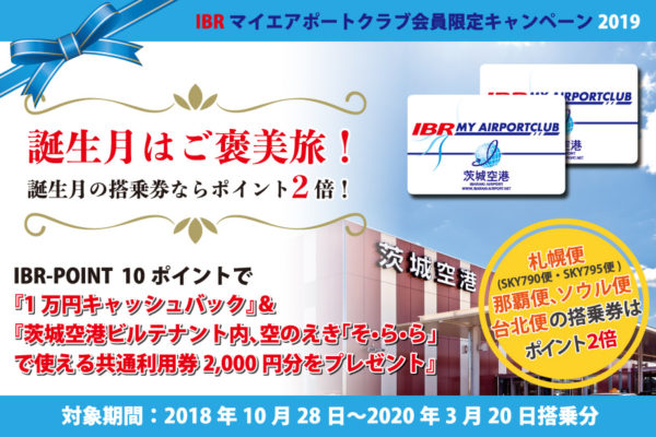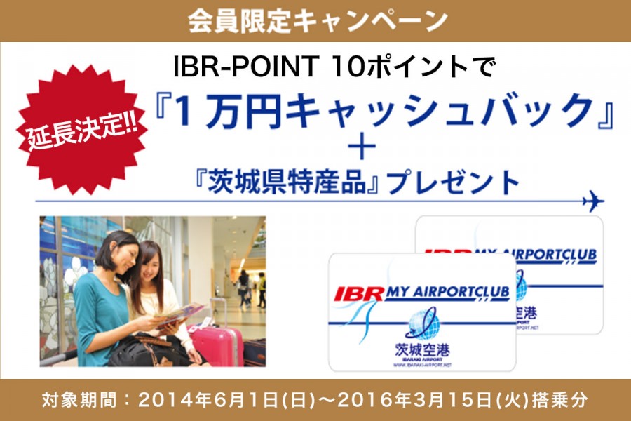 IBRマイエアポートクラブ会員限定キャンペーン 「IBR-POINTでキャッシュバック&特産品プレゼント」