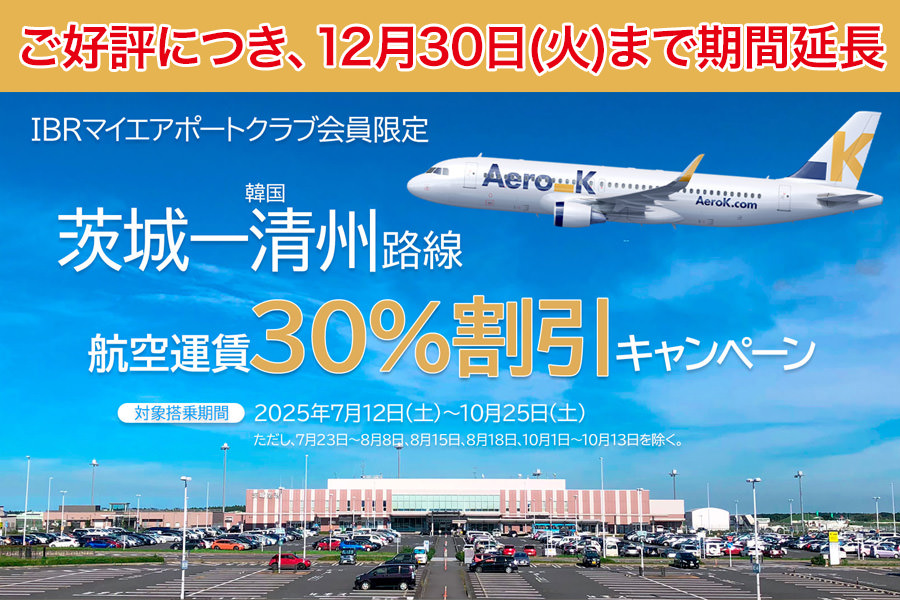 【12月30日まで延長】茨城―韓国・清州路線の利用促進キャンペーン拡充について