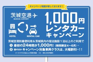 茨城空港到着便利用&県内の宿泊施設一泊以上のご利用で最初の24時間が1,000円(税込)。しかも茨城県内乗り捨て無料!全車カーナビ付き!