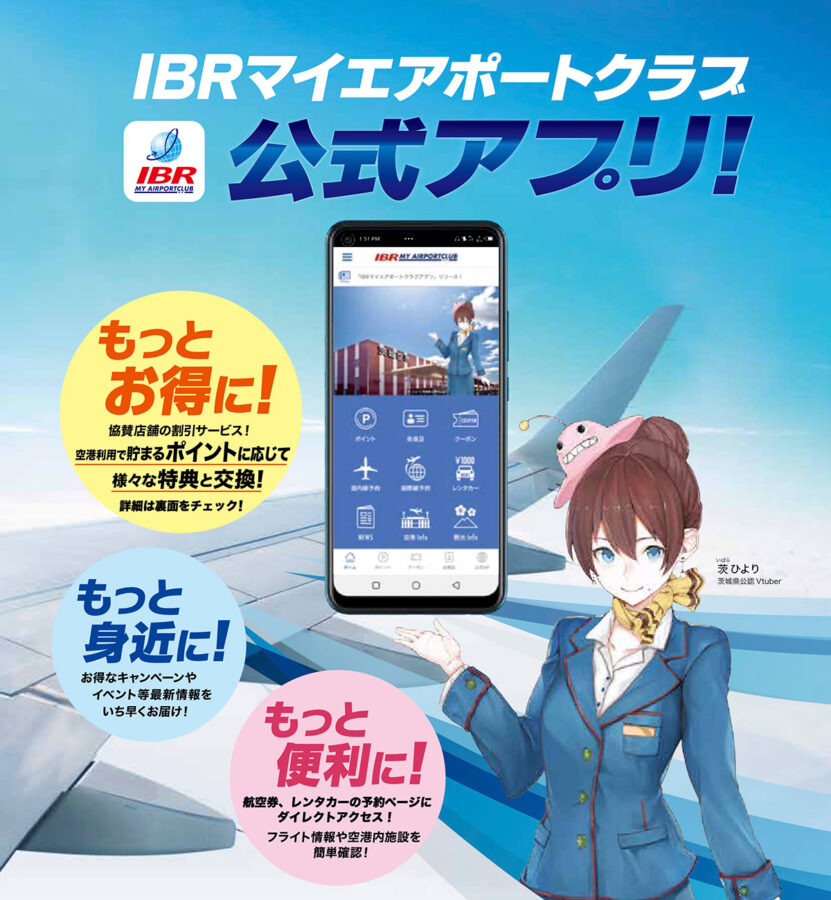 「IBRマイエアポートクラブ」は、茨城空港を利用し、応援してくれるみなさまに、空港を一層身近に感じていただくための個人会員制度です。