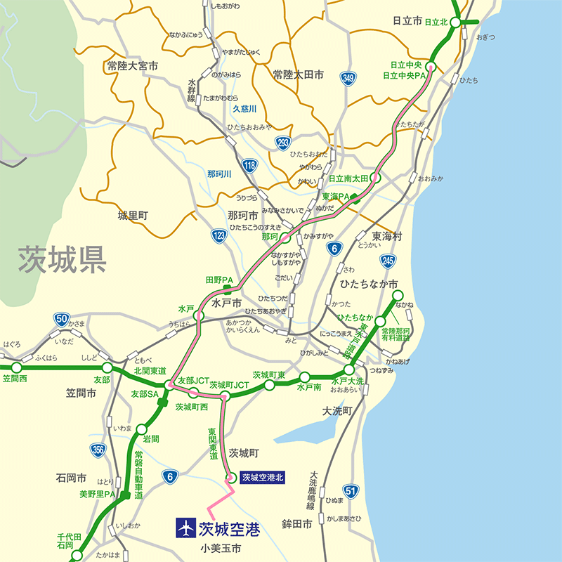 日立中央ICから石岡小美玉スマートIC〜茨城空港アクセス道路で約60分
