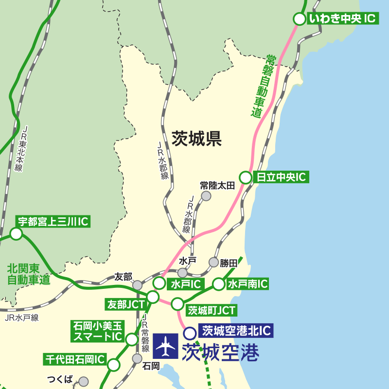 いわき中央ICから石岡小美玉スマートIC〜茨城空港アクセス道路で約100分