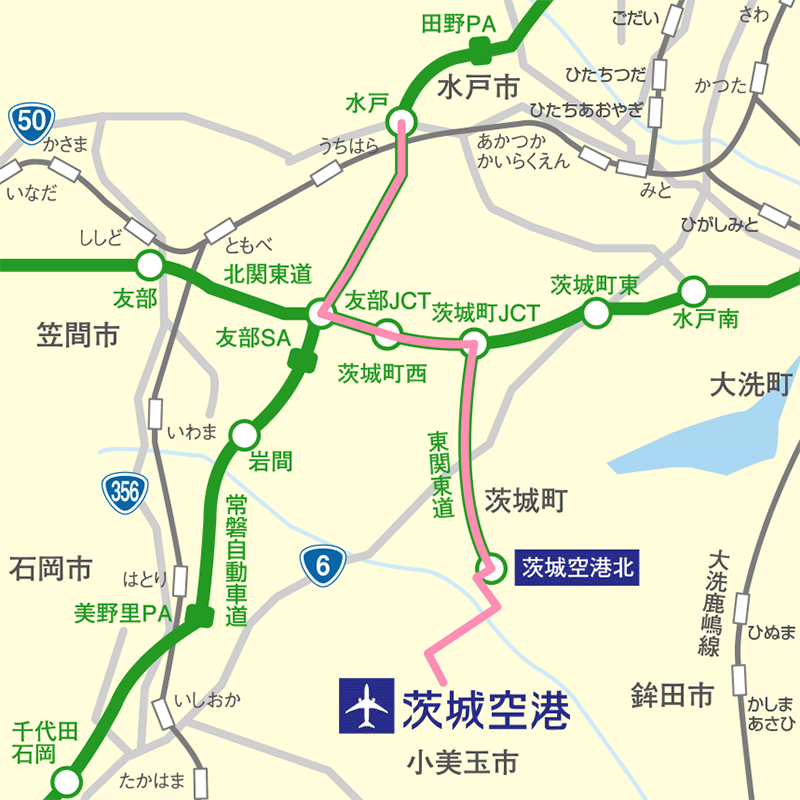 - 茨城町JCTで東関東自動車道水戸線に乗り換え。茨城空港・鉾田方面へ。
