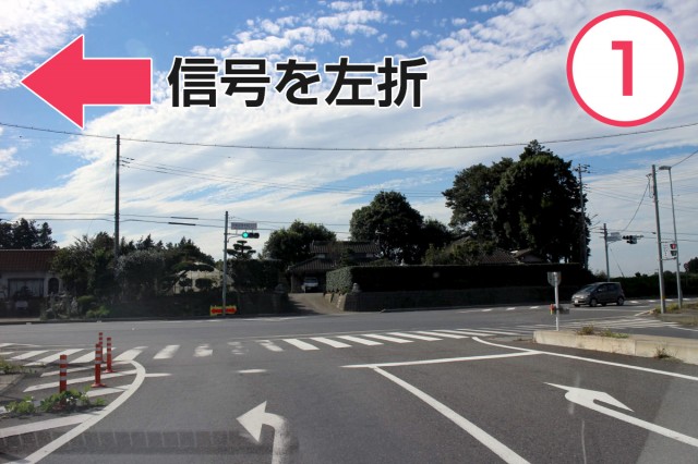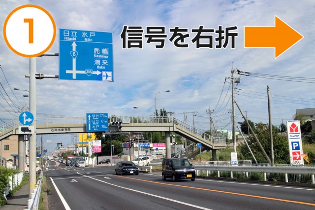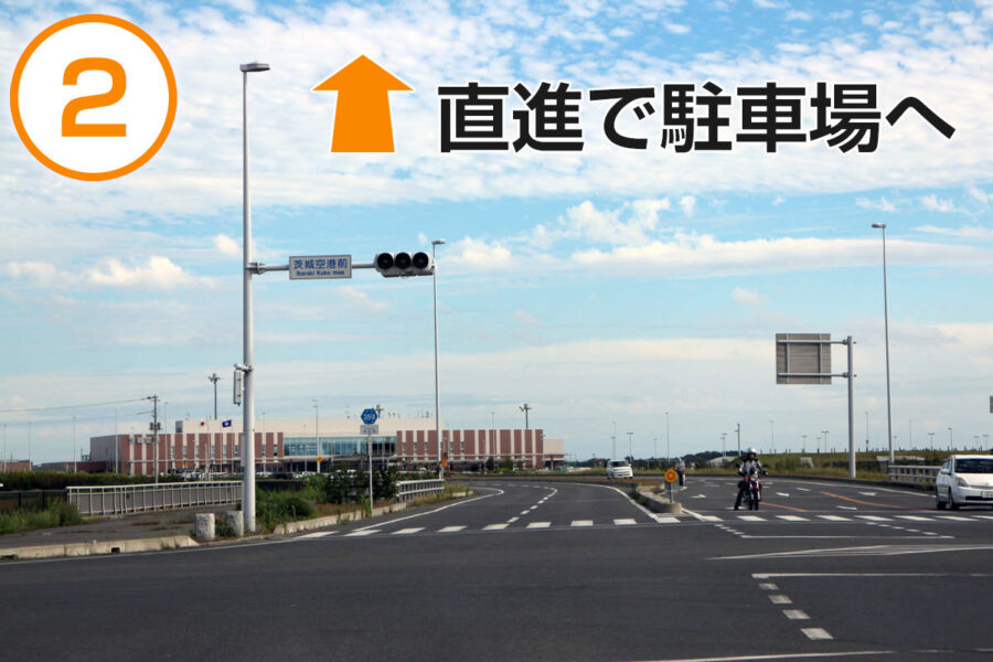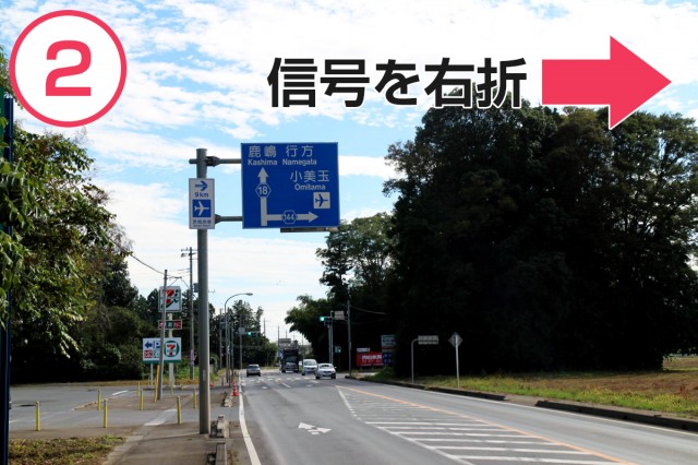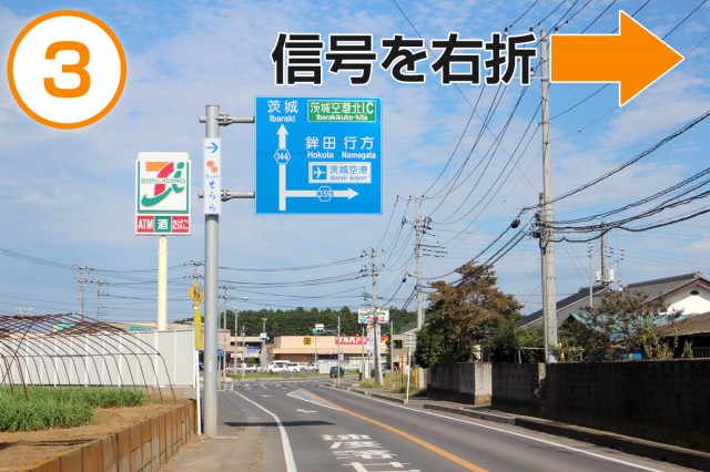茨城空港北ICをおりたら、信号を左折(県道18号線)。