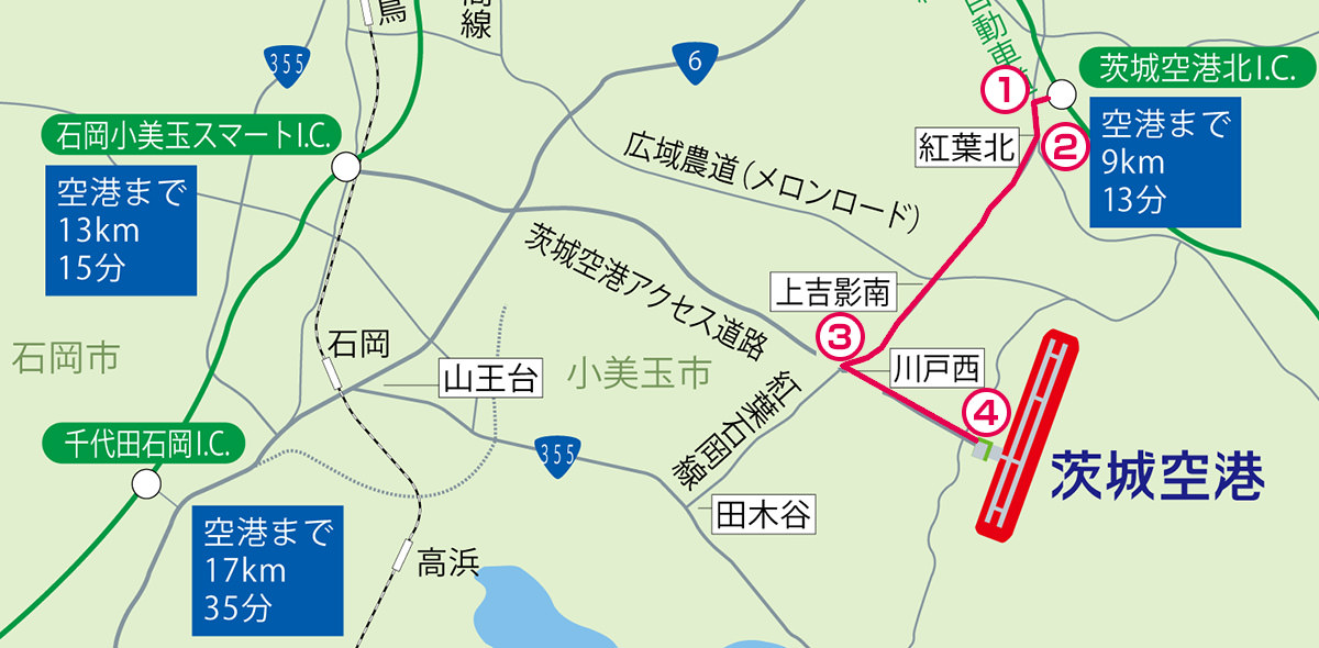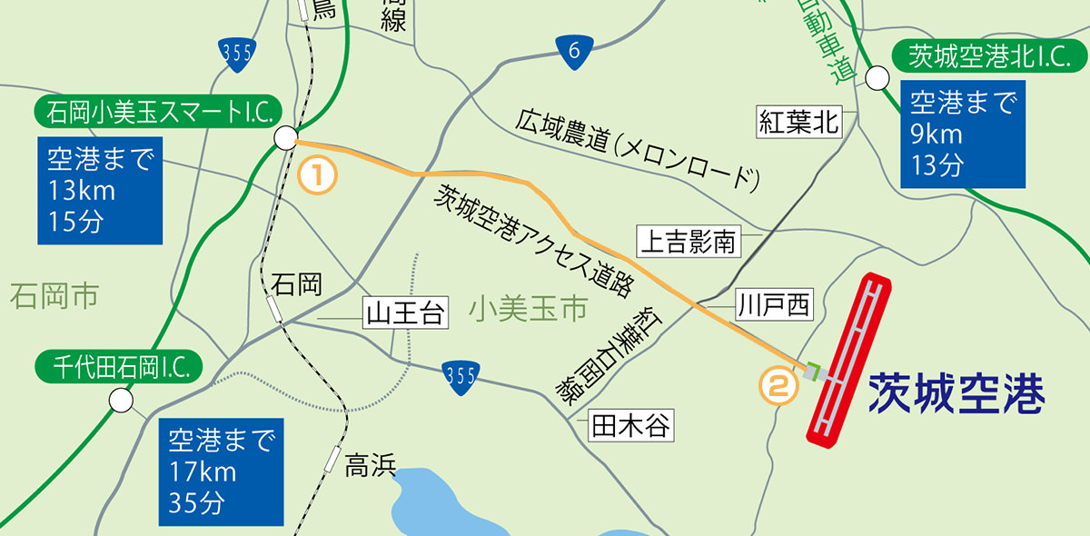 石岡小美玉スマートインターチェンジから茨城空港へ