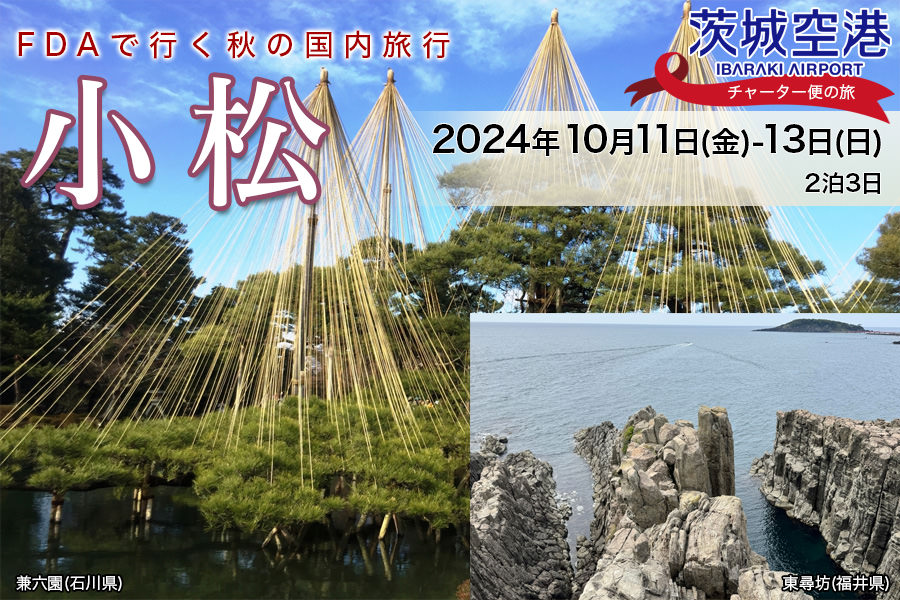 FDAによる茨城空港発着の「茨城-小松」のチャーター便が計画され、下記のとおり、本チャーター便を利用した旅行商品の販売が開始されましたので、お知らせします。