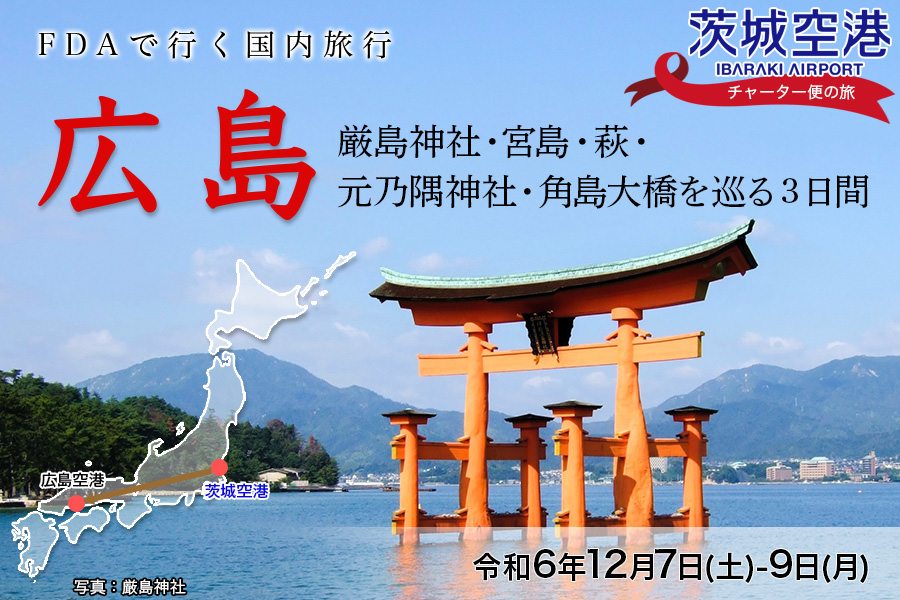 FDAによる茨城空港発着の「茨城-広島」のチャーター便が計画され、下記のとおり、本チャーター便を利用した旅行商品の販売が開始されましたので、お知らせします。
