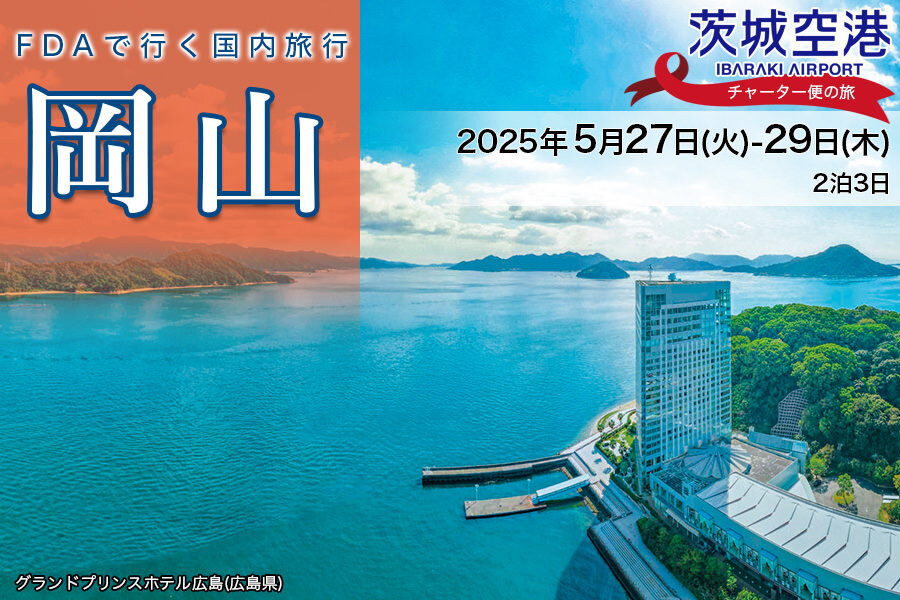 FDAによる茨城空港発着の「茨城-岡山」チャーター便が計画され、現在、旅行商品の予約受付中です。