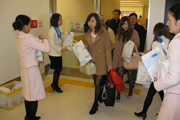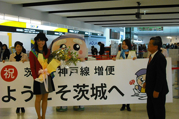 The `Smile Kobe’ ambassador, who took the memorial flight BC182 from Kobe, was greeted at Ibaraki Airport’s welcome reception.