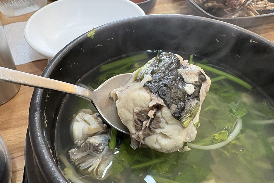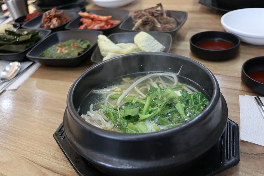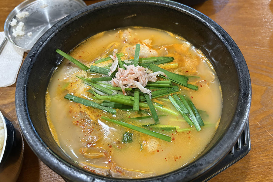 釜山で地元の人々に親しまれる「フグスープ(ポックッ)定食」は、昆布だしをベースに、ふぐや豆もやし、セリなどの食材を加えた澄まし汁です。あっさりとした味わいながらも深いコクがあり、朝食にも最適な一品です。