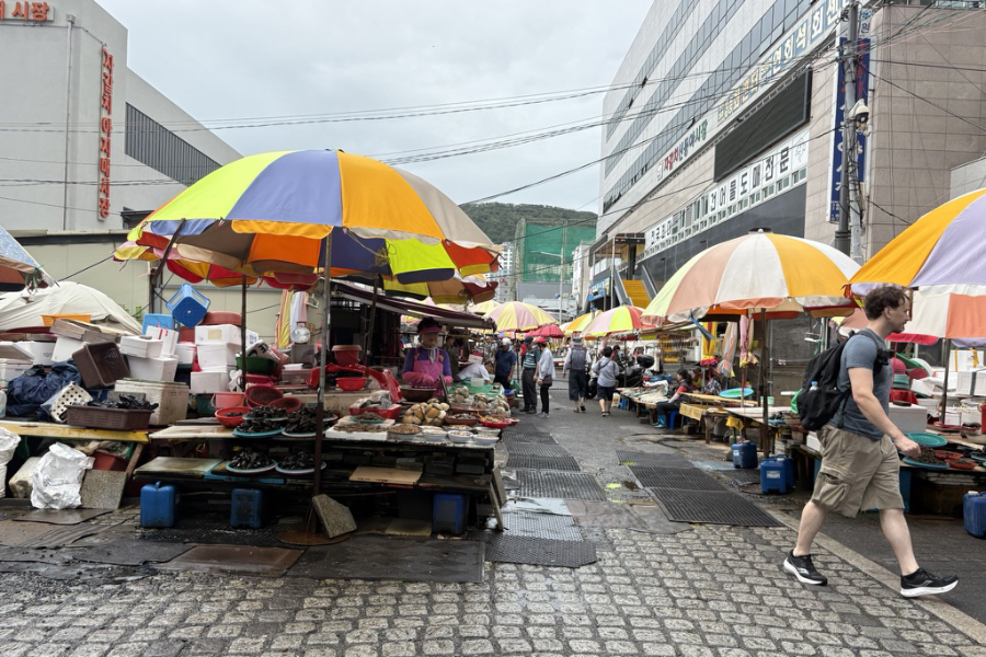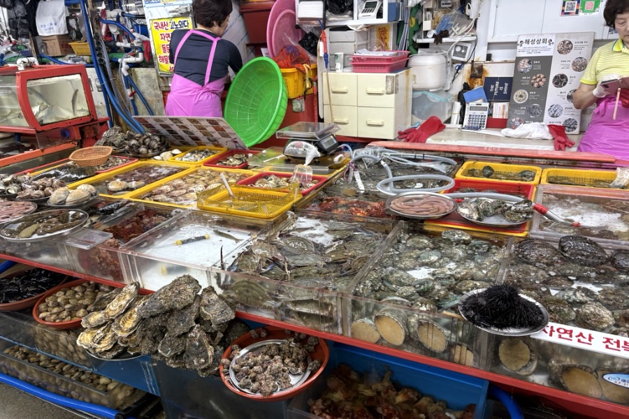 市場は大きく二つのエリアに分かれています。屋外の伝統市場は、魚介類がそのまま露店に並び、地元の買い物客で活気にあふれています。一方、屋内の近代市場では、1階の魚売り場で購入した魚を2階の食堂に持ち込むと調理してもらうことができ、観光客にも便利です。地元の雰囲気を感じながら新鮮な海の幸を楽しめる、釜山観光で欠かせないスポットです。