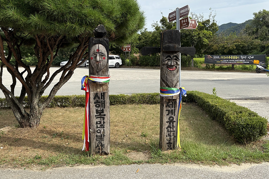 安東河回村は、600年以上にわたり豊山(プンサン)柳氏一族が暮らしてきた集姓村で、韓国伝統家屋の美が色濃く残る歴史的な集落です。村の中心には柳氏の家である大きな瓦屋が位置し、その周囲には原型がよく保存された藁葺きの家々が並んでいます。村の名は、洛東江(ナットンガン)が村をS字型に回るように流れていることに由来しています。村内には、朝鮮時代の伝統家屋に住む人々が現在も生活しており、伝統的な「河回別神グッ仮面劇」を観賞できることでも知られています。