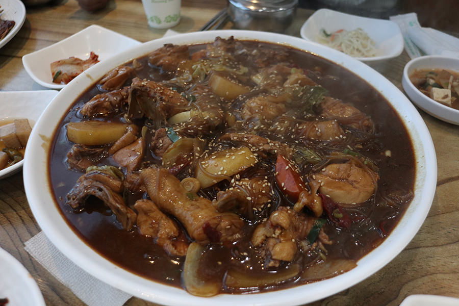 今回いただいたものは辛くないバージョンで、甘辛くてこくのある味わいでした。ぶつ切りの鶏肉とホクホクのジャガイモが特に印象的で、甘辛ソースとよく合い、満足感のある一品です。安東を訪れたらぜひ味わいたい、地域色豊かな郷土料理です。