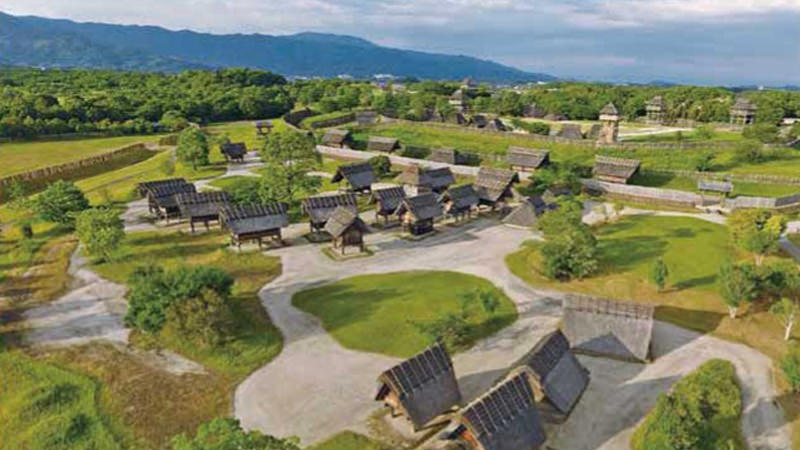 園内には、国の特別史跡「吉野ヶ里遺跡」の巨大環壕集落が復元され、弥生時代にタイムトリップしたかのような景色が広がっています。建物や壕の内部も見学ができ、「勾玉づくり」などの体験プログラムも開催されています。
