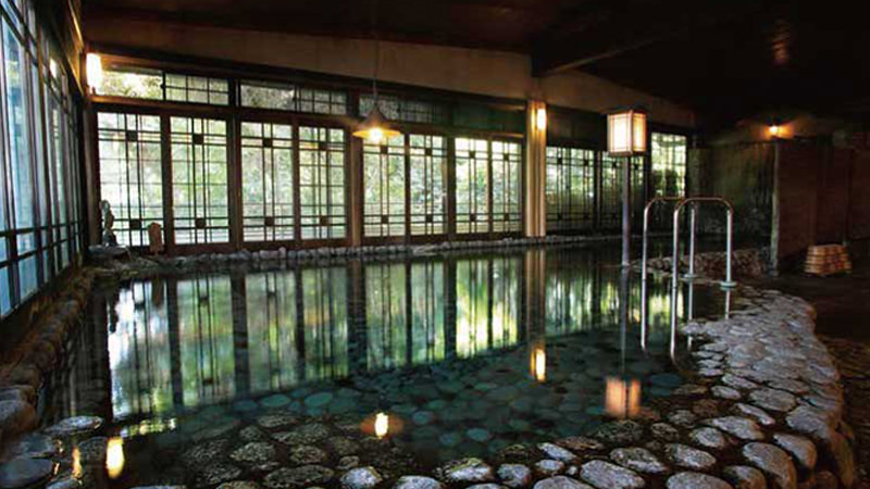 町中でありながら木々に囲まれた浴場は深山の秘湯を思わせます。