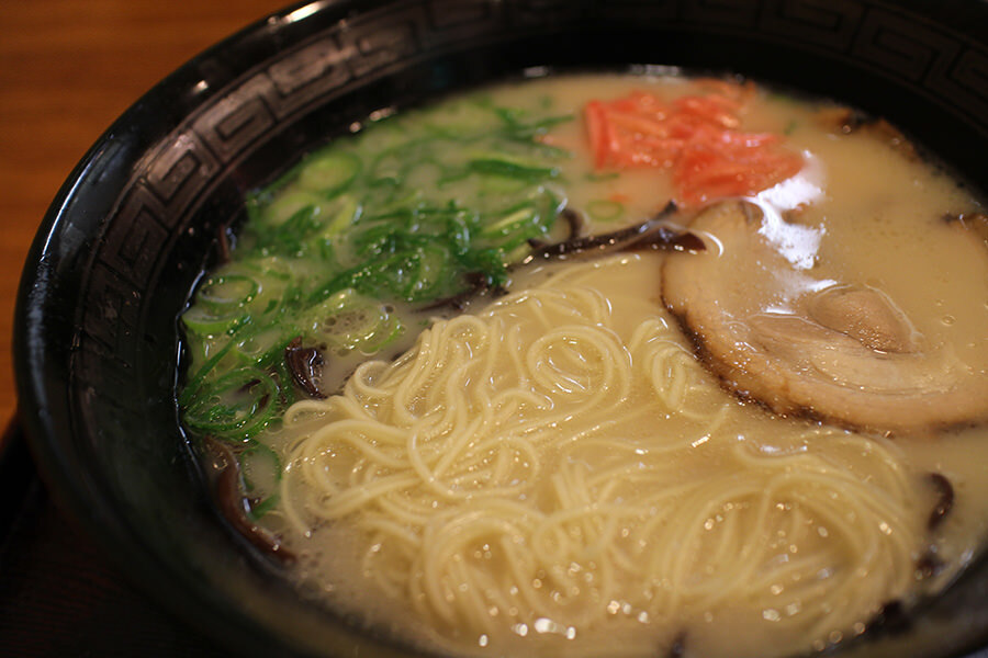 あっさりした口当たりながらコクのある豚骨スープと、喉越しのよい細麺がからみあう熱々のラーメンは屋台のシメにぴったりのおいしさ。