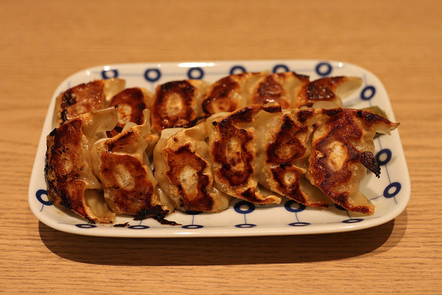 福岡の餃子は小ぶりなサイズが特徴的。程よく効いたニンニクの風味が食欲をそそり、薬味として付いてくる柚子胡椒との相性も抜群です。
