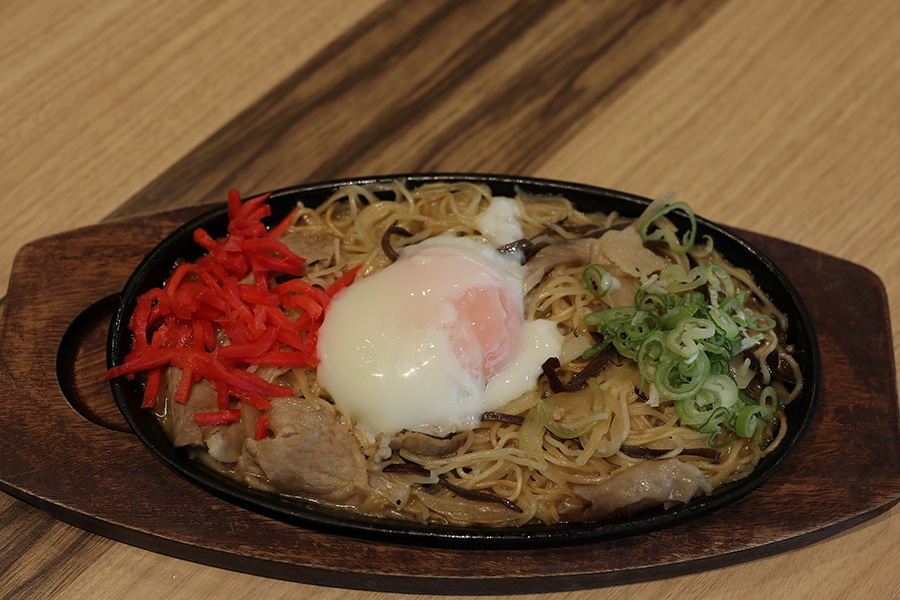 スープがない豚骨味の焼きラーメンは、博多屋台の名物メニューのひとつ。ステーキやハンバーグのように鉄板で焼いて提供され、見た目にもインパクト大のB級グルメ。