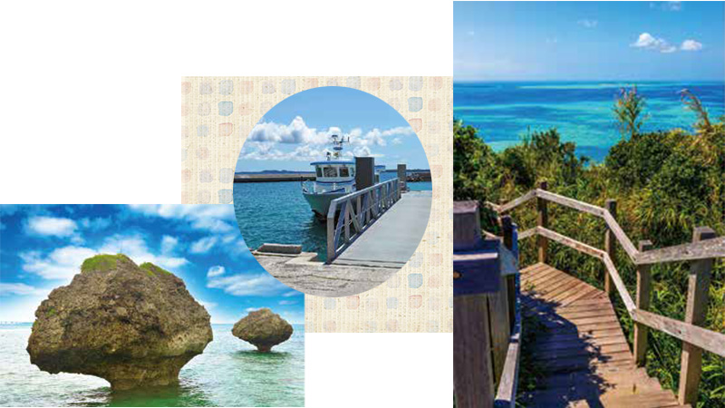 下地島空港から車で約40分〜フェリーで約15分