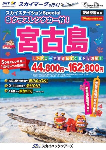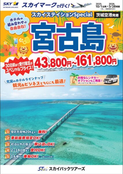 【茨城特別優待】開催!スカイマークで行く宮古(下地島)フリープラン