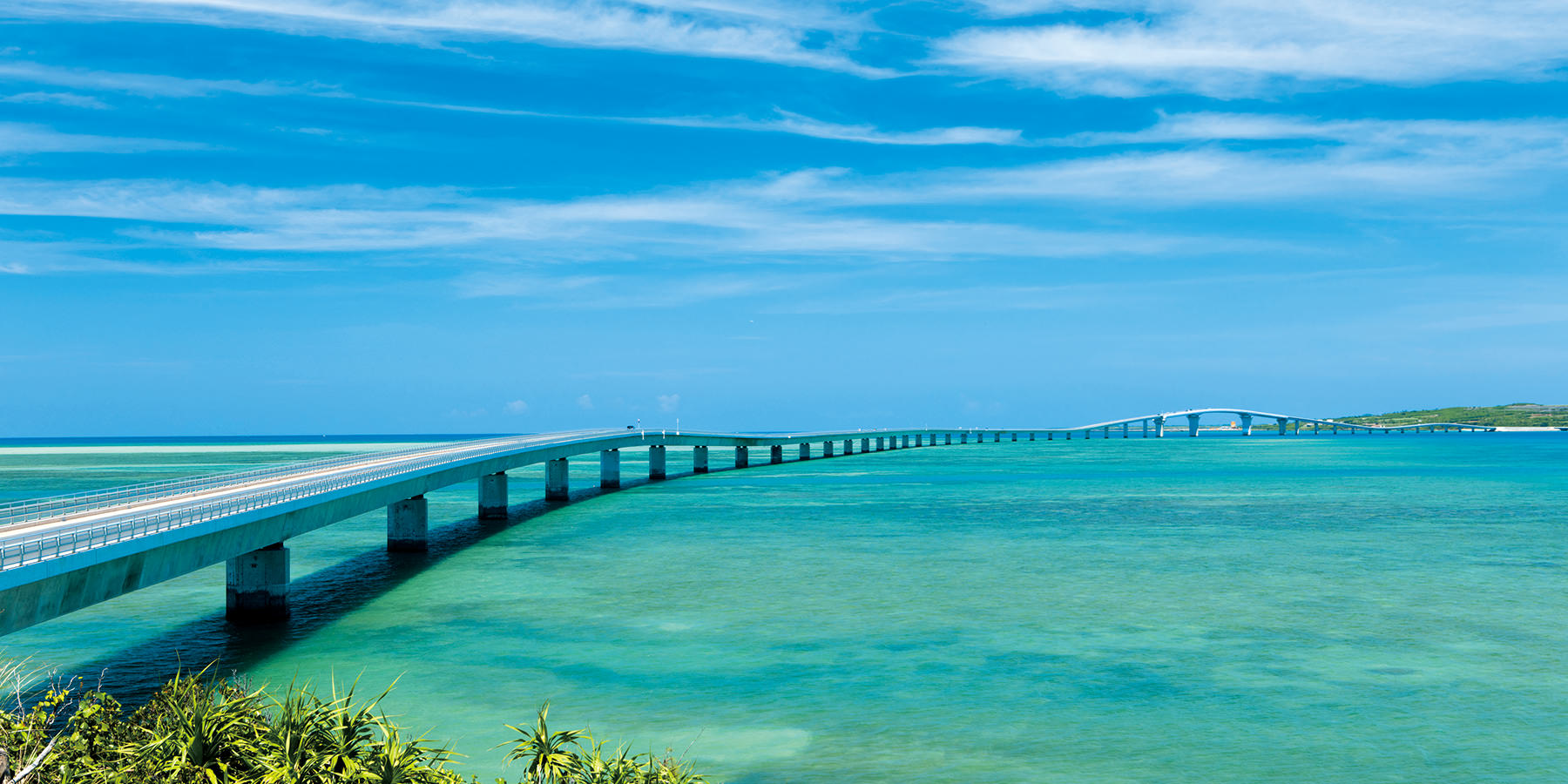 宮古群島は、沖縄本島から南西に約300kmに位置し、大小8つの島(宮古島、池間島、大神島、伊良部島、下地島、来間島、多良間島、水納島)で構成されており、島全体がおおむね平坦で、さまざまな場所から絶景を楽しめます。
