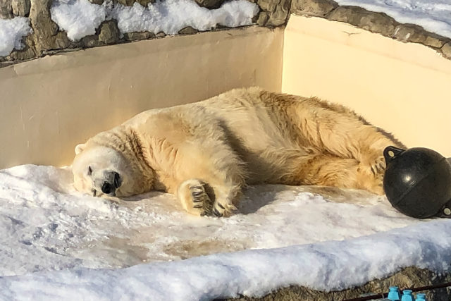 いよいよホッキョクグマくんとのご対面!と思ったら、あれ?いない?
