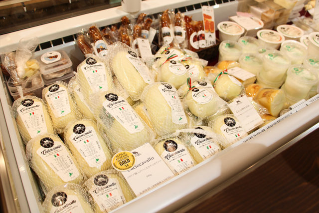 ショーケース内には、常時十数種類のチーズが並べられています。モッツァレラ、カウチョカヴァロ、リコッタ、ブッラータ、フォルマッジョ…馴染みのある名前から、初めて聞く名前まで…色・形もそれぞれ異なり、商品を見ているだけでも楽しい!