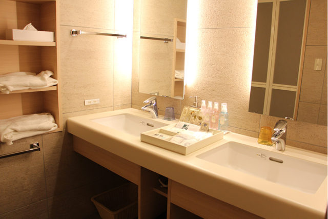こちらのレディースルームもアメニティが充実していました。また、1人1台の洗面台付き!何かとバタバタする朝も、並んでスムーズに準備をすることができます。