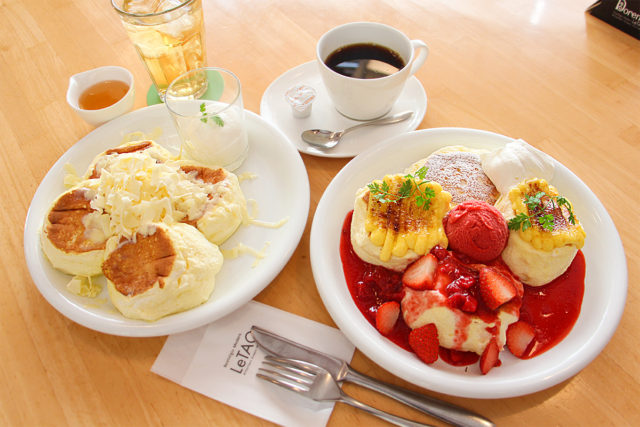 私たちもさっそく人気のパンケーキを注文。待つこと約20分。1枚1枚丁寧に焼き上げているので、多少の待ち時間はご愛嬌。