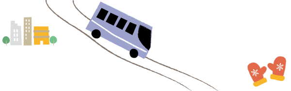 札幌駅と新千歳空港から送迎バスが出ているため、冬の雪道の運転が不安な方も心配無用です。札幌駅からは約2時間30分、新千歳空港からは約1時間30分、雪景色を楽しみながらゆったり過ごしていれば到着。送迎バスは予約制のため、事前予約をお忘れなく。