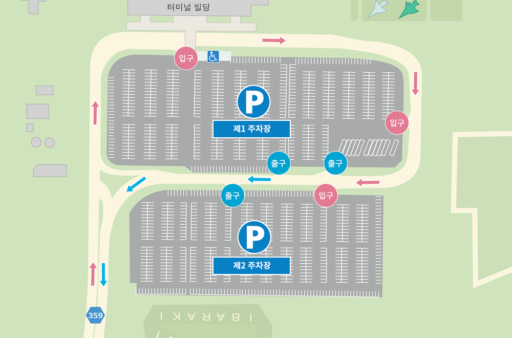 1층 실외, 국내선 탑승 대합실, 국제선 탑승 대합실에 흡연장소가 있습니다. 터미널 빌딩내는 금연이오니 흡연시는 반드시 흡연장소를 이용하시기 바랍니다.