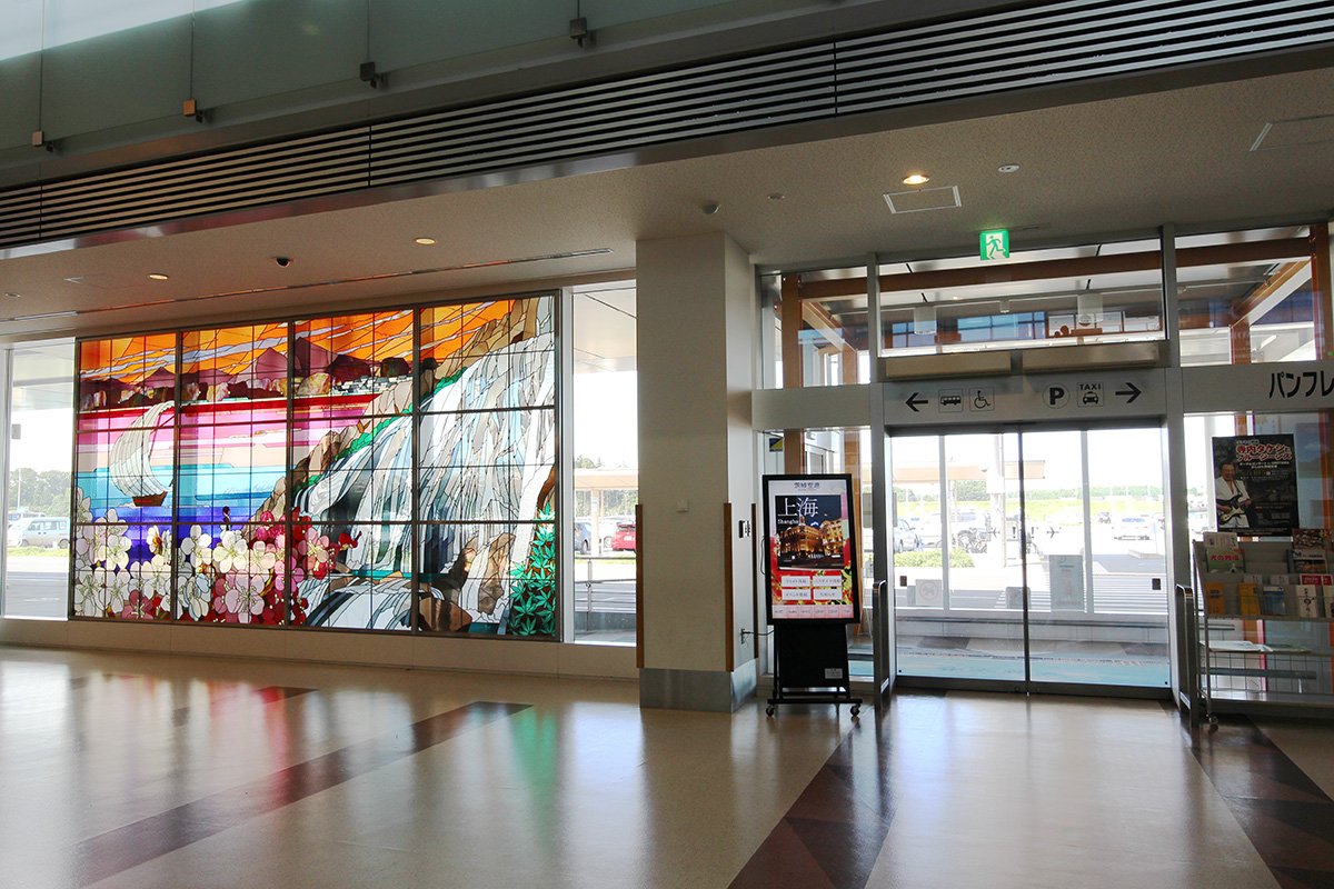 만남의 장소터미널 빌딩 입구 오른쪽에 대형 스테인드 글라스가 있습니다. 만남의 장소로 이용하세요.