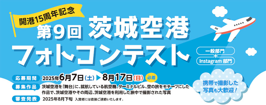 2025年6月7日(土)より、「第9回茨城空港フォトコンテスト」の作品を「一般部門」及び「Instagram部門」で募集いたします。