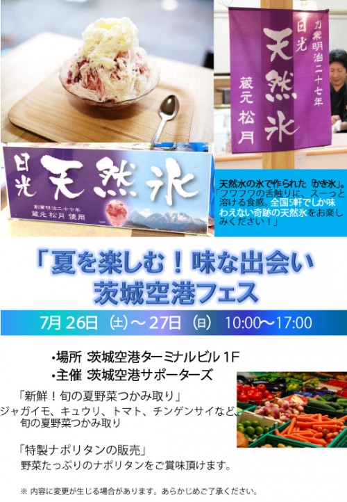 夏休みを迎えたシーズンに、茨城空港に来場する皆様に北関東地域の夏の食をお届けします。
