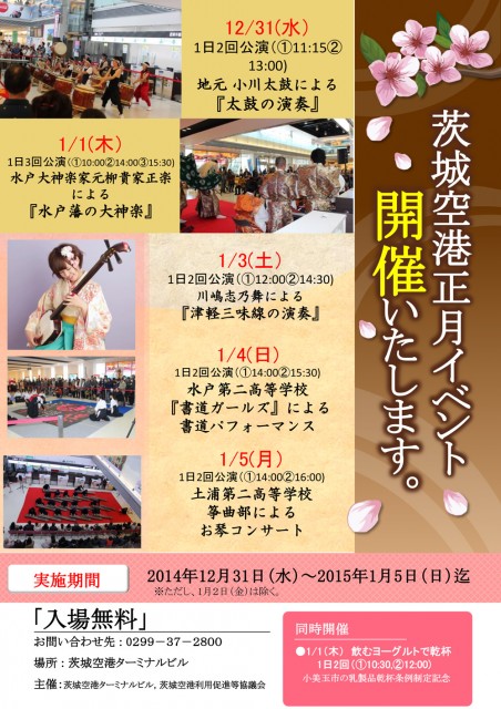 茨城空港では12月31日(水曜日)~1月5日(月曜日)の期間(ただし、2日(金曜日)を除く)、お正月イベントを開催します。