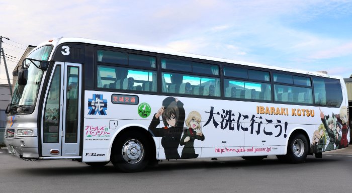 - ガールズ&パンツァーラッピングバス3号車(高速バスタイプ)で運行を予定しております。(故障等によりラッピングバスで運行が出来ない場合もございますので、その際は予めご了承ください。)