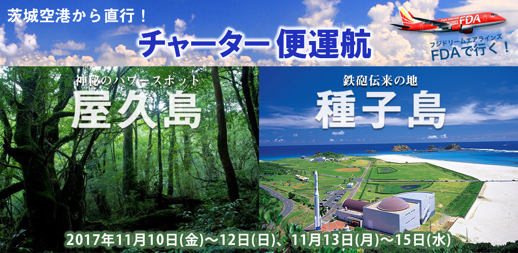 この度、フジドリームエアラインズ(FDA)による茨城−種子島を結ぶチャーター便が運航されることとなりました!