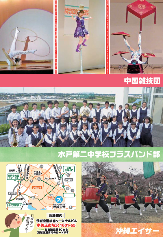 当日は、茨城県内の高校生とのコラボレーションによる「オリジナル商品販売」や「子ども向けイベント」の他、水戸第二中学校吹奏楽部のミニコンサートに沖縄エイサー、中国雑技団などステージイベントも盛りだくさん。