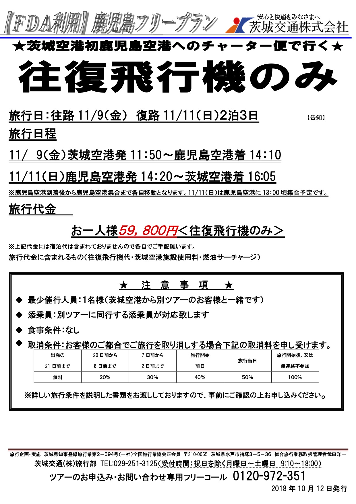 【茨城空港から初運航】鹿児島へのチャーター便が11月に運航されます!