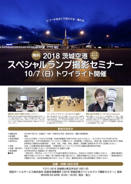 「2018 茨城空港スペシャルランプ撮影セミナー」を開催します。
