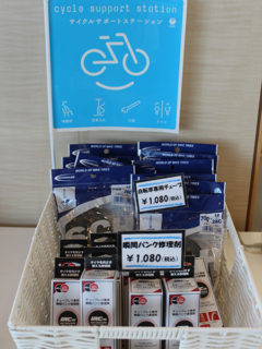 サイクルサポートステーションに登録されている茨城空港では、サイクリストの皆様が快適にサイクリングを楽しんでいただけるよう、サイクルスタンド、更衣室を設置しております。インフォメーションでは、組立用工具、空気入れを無料で貸し出しております。