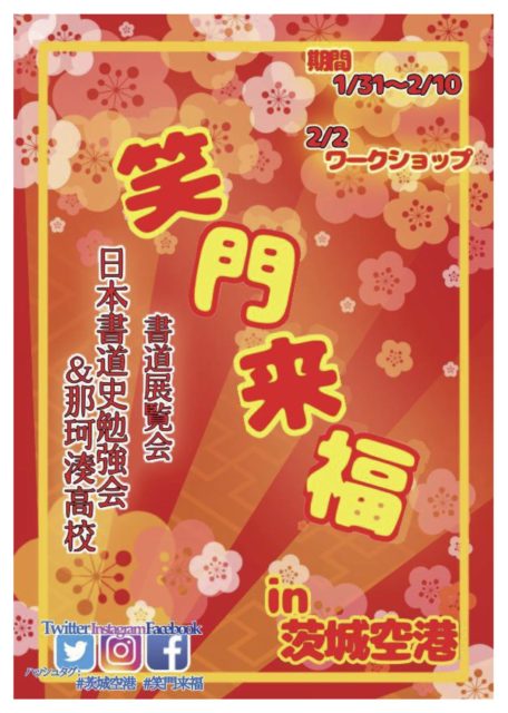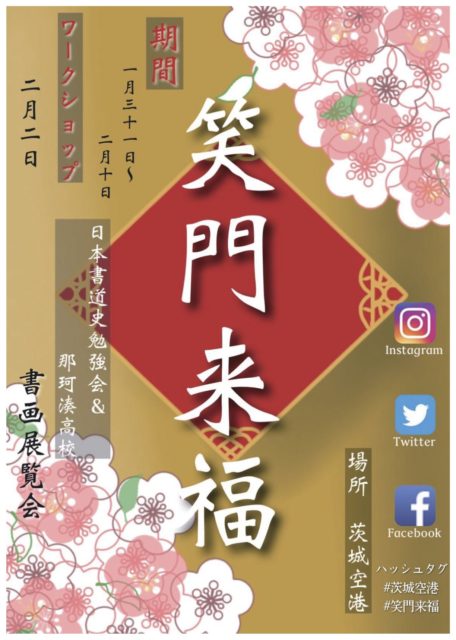 平成31年1月31日(木)から2月10日(日)の期間、茨城空港において、那珂湊高校と日本書道史勉強会が連携した、書画展覧会が開催されます 。