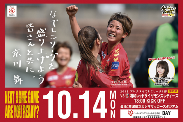 10月14日(月・祝)に,茨城県立カシマサッカースタジアムにて,2019プレナスなでしこリーグ1部 第15節『INAC神戸レオネッサvs浦和レッドダイヤモンズレディース』が開催されます。