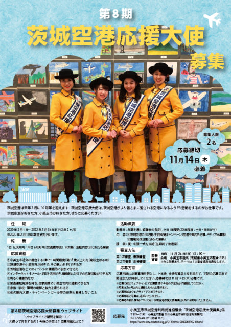 小美玉市茨城空港利用促進協議会において、市内や県内外のイベント・キャンペーンで、茨城空港応援大使として活躍してくださる方を募集しています。
