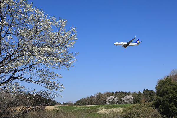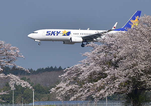 満開に咲き誇る桜の間を縫って降りてくるSKYの機体に春の訪れを感じさせる一枚なので選びました。
