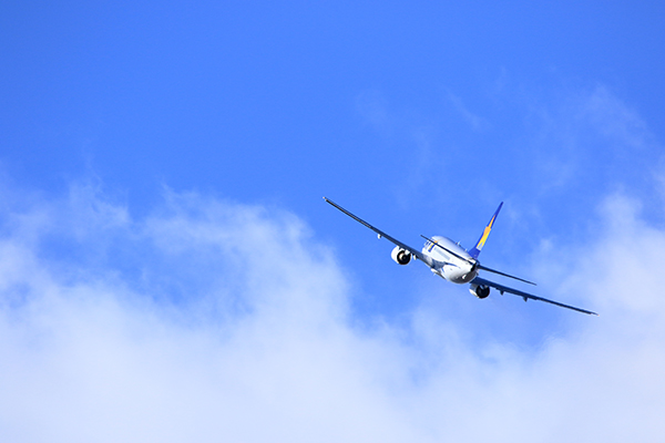 飛行機をあえて中心から外して背景の雲と青空を多く取り入れたところがこだわりです。
