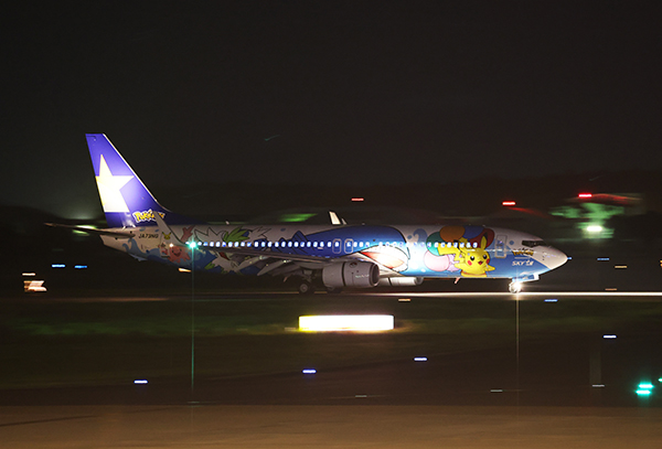 白いポケモンジェットの初撮りが夜でしたので、低速シャッターで難しく、また、光が上手く機体にあたり、何とか撮れた作品です。